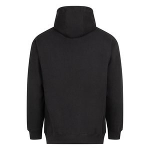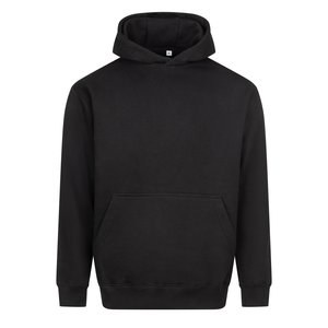 3-panel hood without drawstring. Kangaroo pocket. Brushed interior. 100% cotton outer surface for better shape retention. Ribbed cuffs and hem.