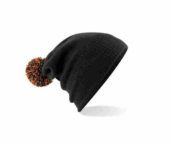 Beechfield BF450 - Black / Orange - Trendy Two-Tone Pompom Winter Beanie
