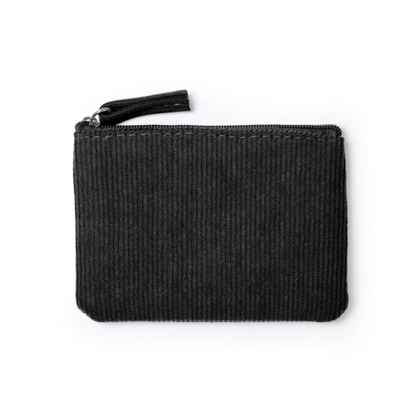 Velvet ribbed coin purse. Zip closure with coordinated puller.