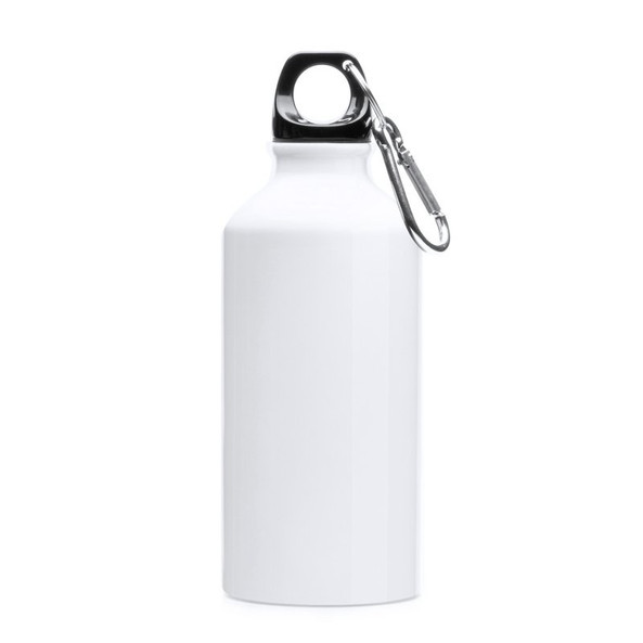 400ml capacity bottle with a smooth and shiny white finish body, especially designed for sublimation printing. With screw-on safety cap and metal carrying carabiner. Presented in an individual box.