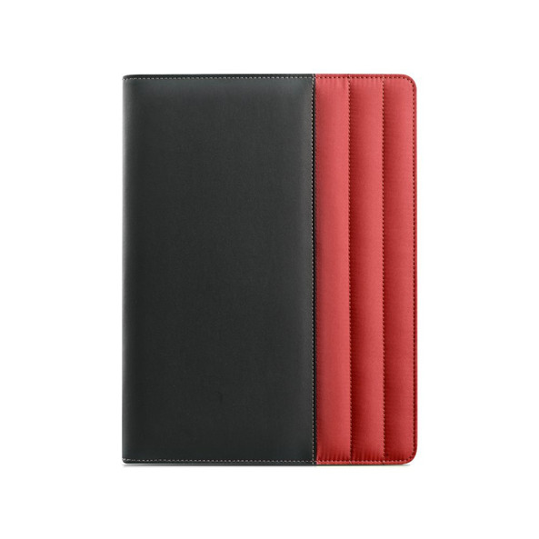Portfolio with striped notebook and calendar on every page. Pen loop and pockets for cards and documents.