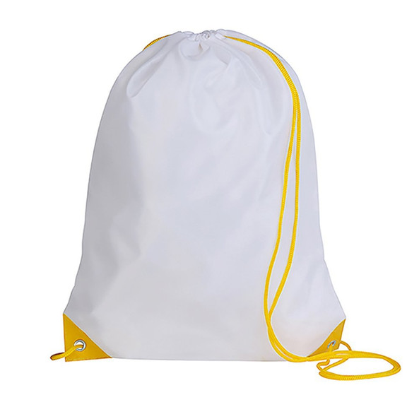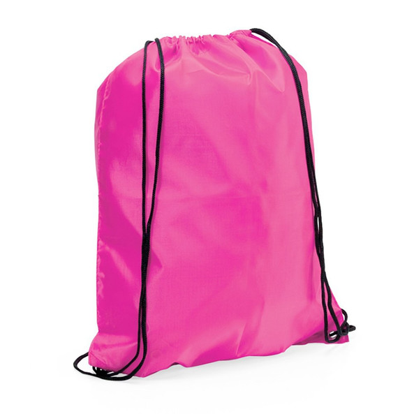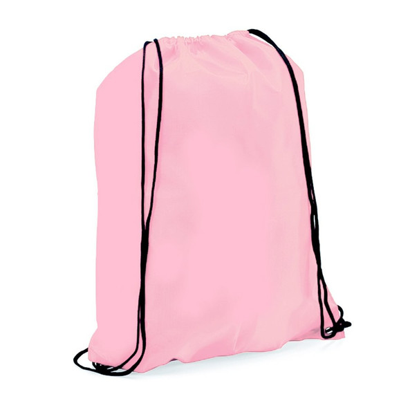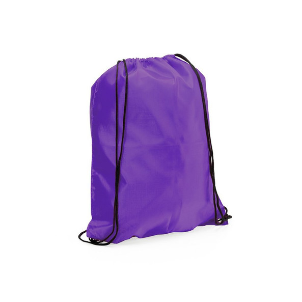 Drawstring backpack in soft polyester 210T in cheerful and wide range of colors. With black self closing strings and corners with metal eyelets and PU leather reinforcement in matching color.