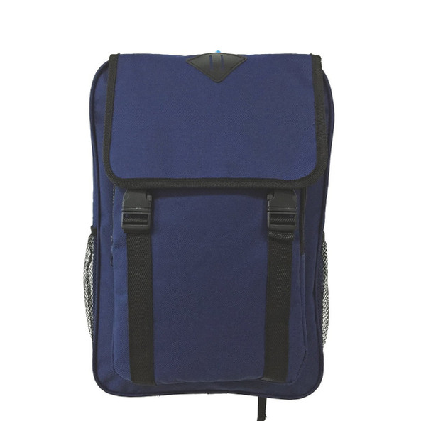 Backpack in polyester with double buckle closure. Exit for headphones, elastic net pockets on the sides, adjustable straps.