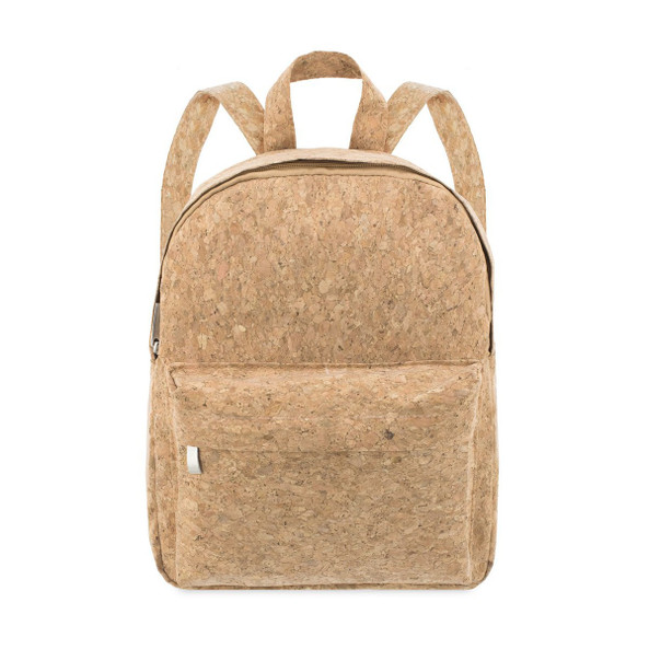 Cork backpack with large zipped main compartment, front zipped pocket, adjustable shoulder straps, top handle.