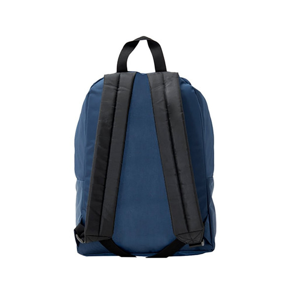 Classic backpack in durable fabric. Spacious main compartment with zippered front pocket. Contrasting zippers, pulls, handles and adjustable padded straps.