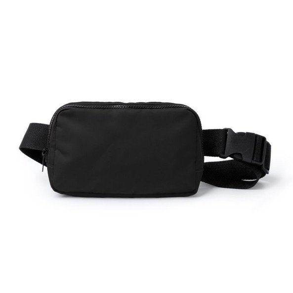 Water-repellent nylon fanny pack. Two compartments with zip closure. Adjustable strap.