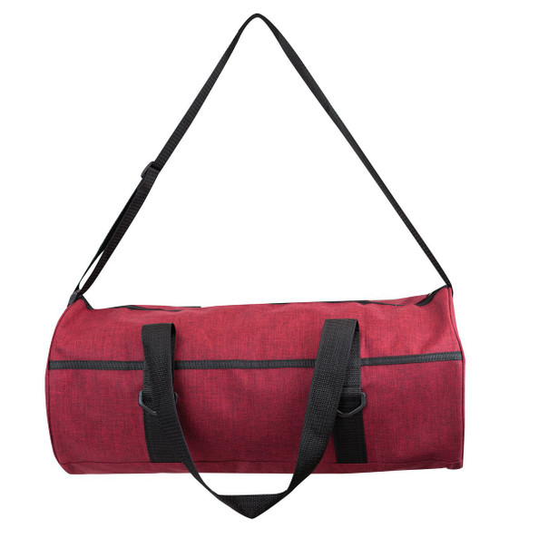 600D polyester heathered sports bag with large inside compartment, and reinforced handles. Adjustable shoulder strap.