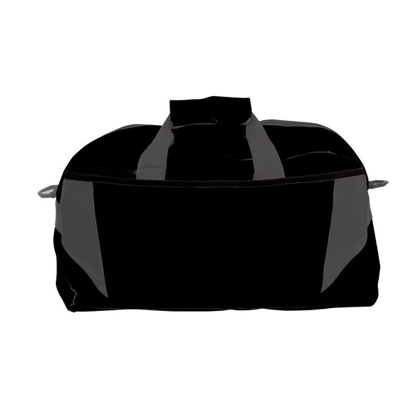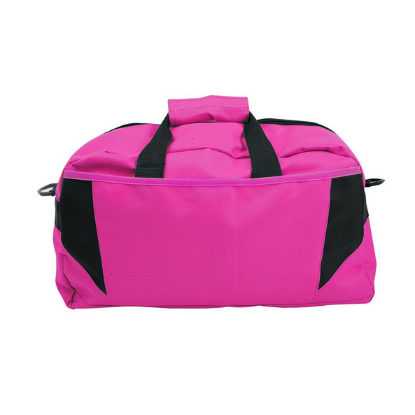 Travel bag with large main compartment with zipper closure and front pocket with velcro closure. Reinforced handles and adjustable shoulder strap.