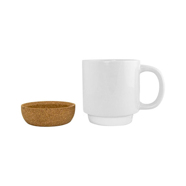 Claps 74254 - White - Ceramic Mug with Removable Cork Base