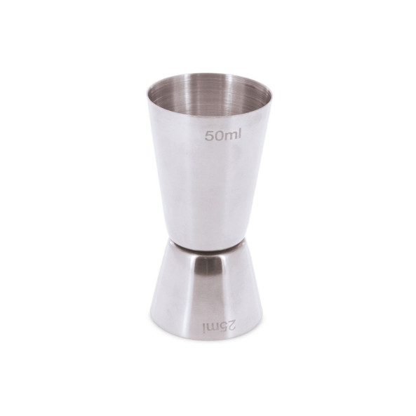 Stainless steel measuring cup of 50ml and 25ml.