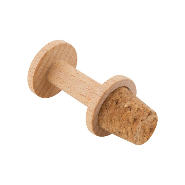 Cork and wood bottle stopper, with silicone rings attached to the stopper that can be removed and used as glass markers.