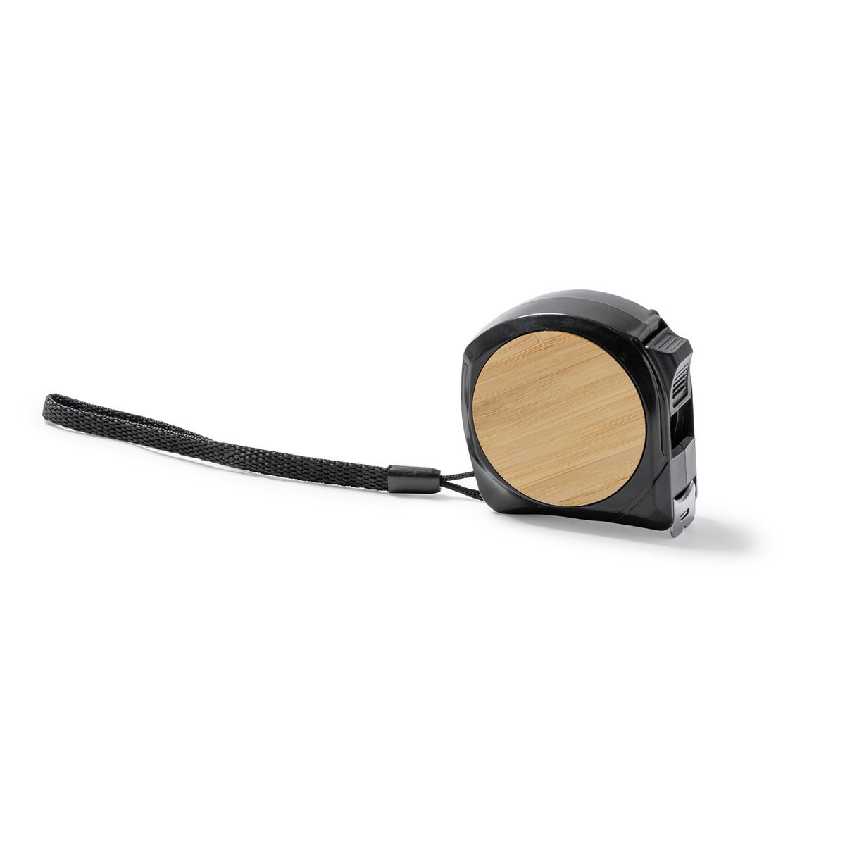 3m measuring tape with locking mechanism and metal tape. Metal clip, lanyard, bamboo front insert. Supplied in single pack.