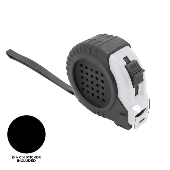 3 metre flexometer with metal blade and locking mechanism. With soft body in varied colors, coated with protective cover made of resistant rubber, metallic clip for belt and carrying belt. With special die-cut for doming and presented in an individual box.