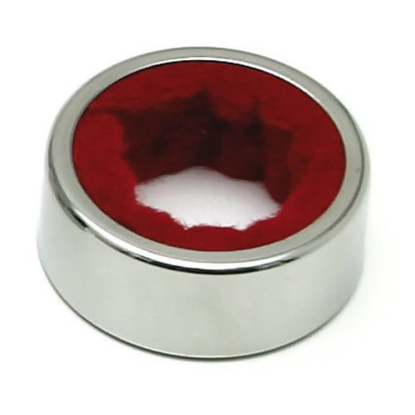Glossy silver colored drip stop, with soft absorbent felt inside.