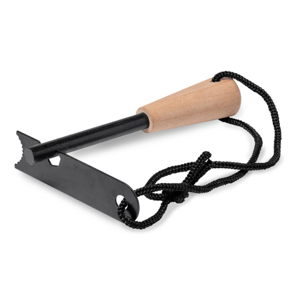 Tool with flint function. Bamboo handle with carrying strap and magnesium lighter. Provided in an eco-designed packaging.