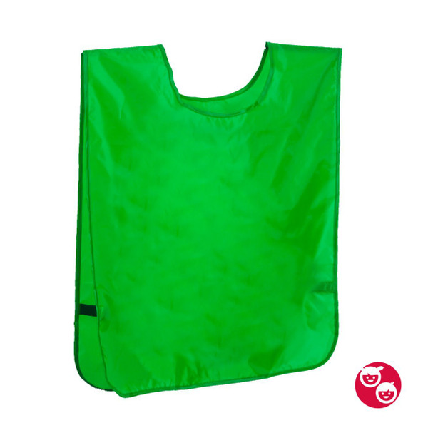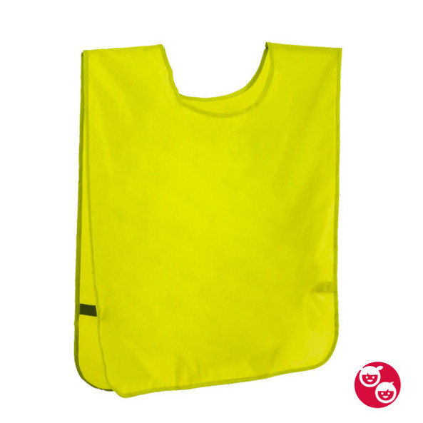 Sporty bib for children in soft and resistant 190T polyester with bright tones and elastic sides. One size fits all.