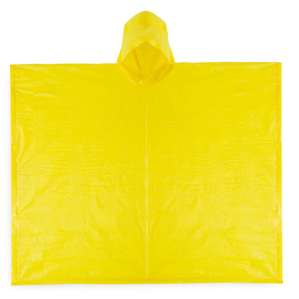 Resistant PEVA poncho in heat-sealed finish in a wide range of tones. With side closures of bracket and presented in an individual bag in matching color with upper part in netting and string with adjustment accessory. One size fits all for adult.