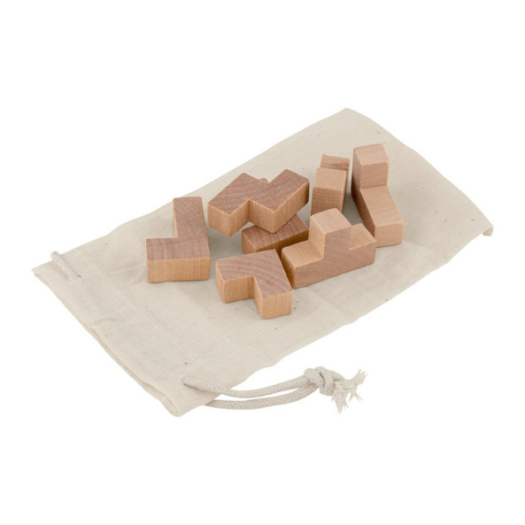 7-pieces skill game presented in a durable cotton case with a drawstring closure