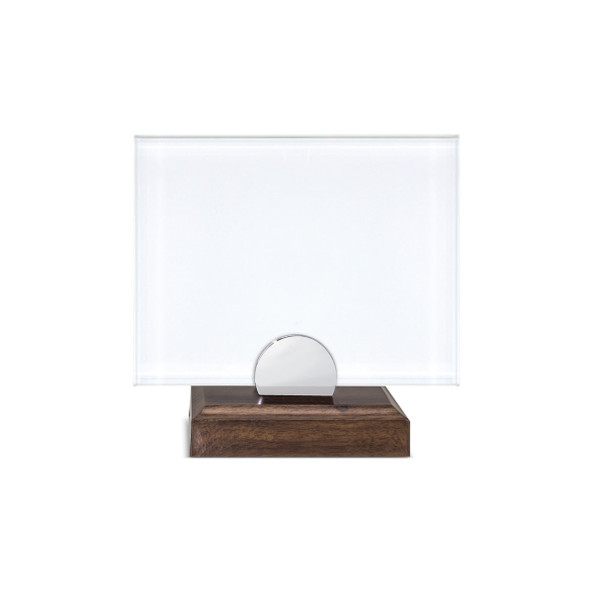 Elegantly designed trophy made with wooden base and glass plate on top, ideal for celebrating special events or commemorations.