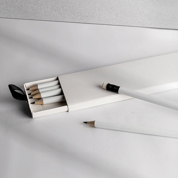 Set of 6 pencils in white colour presented in a with box.