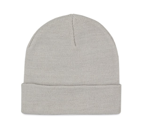 Fine knit beanie with turn-up.