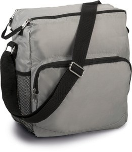 Shoulder cooler bag in 420D PU backing, large front zip pocket, side mesh pocket, adjustable shoulder strap.