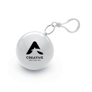 Transparent PE poncho wrapped in an AS ball shell with carabiner hook tohang on a belt or a bag.