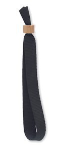 300D RPET polyester event wristband with bamboo ring closure.