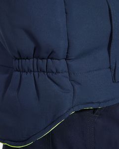 Shell: 100% polyester, taffeta.Padding: 100% polyester.Fluor fabric: 100% single jersey polyester.450 gsm.