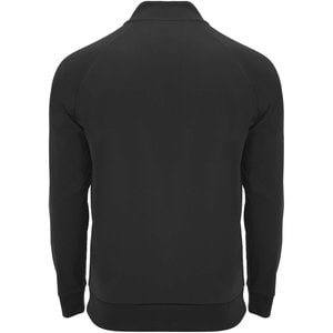 1x1 rib in back collar, cuffs and hem.