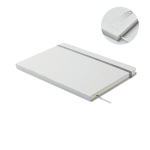A5 notebook with hard recycled carton cover.