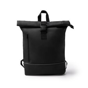 Backpack made from PU and 210D RPET with an extendable main compartment featuring a zip closure and buckle.