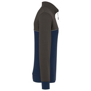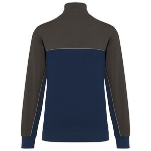 Contrasting piping between the two-tone parts of the garment (body and sleeves, front and back).